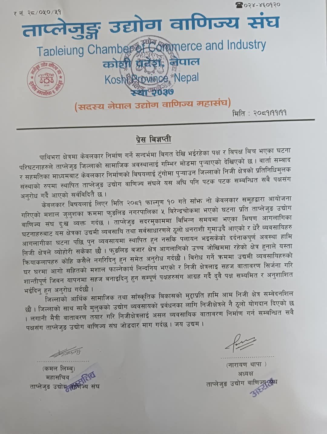 ‘नो केवलकार’ समूहमा आबद्ध आन्दोलनकर्मीले शनिबार बेलुकी निकालेको मसाल (राकेँ) घर घरमा फ्याँक्नु निन्दनीय भएको जनाएको छ ।