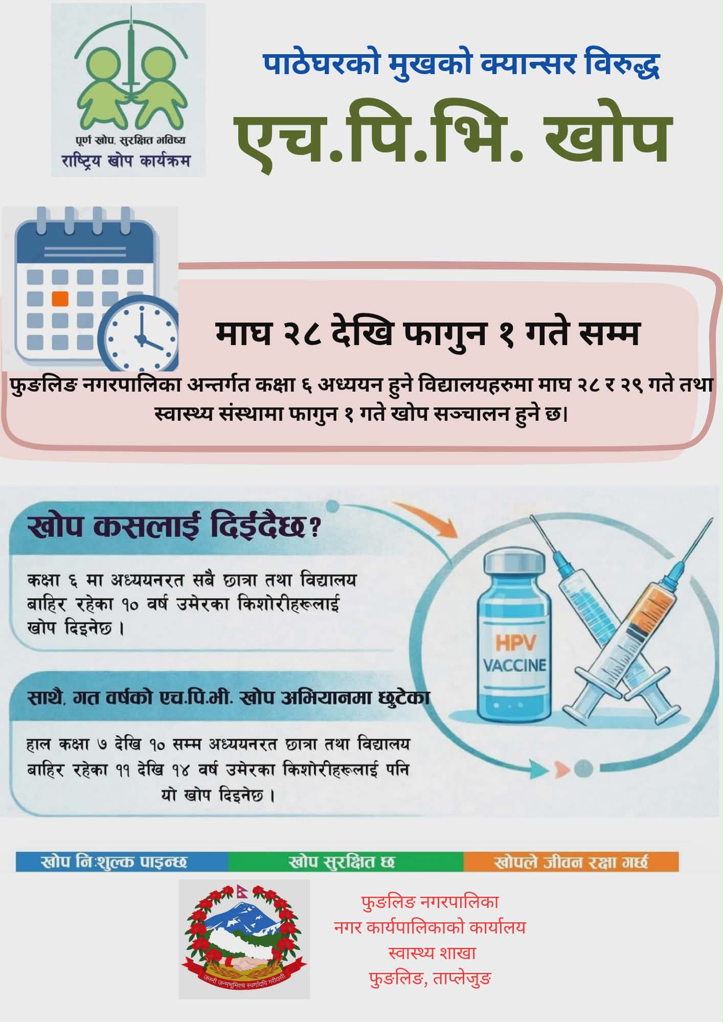 सरकारले देशभर पाठेघर क्यान्सरविरुद्धको एचपीभी खोप कार्यक्रम सञ्चालन गर्ने