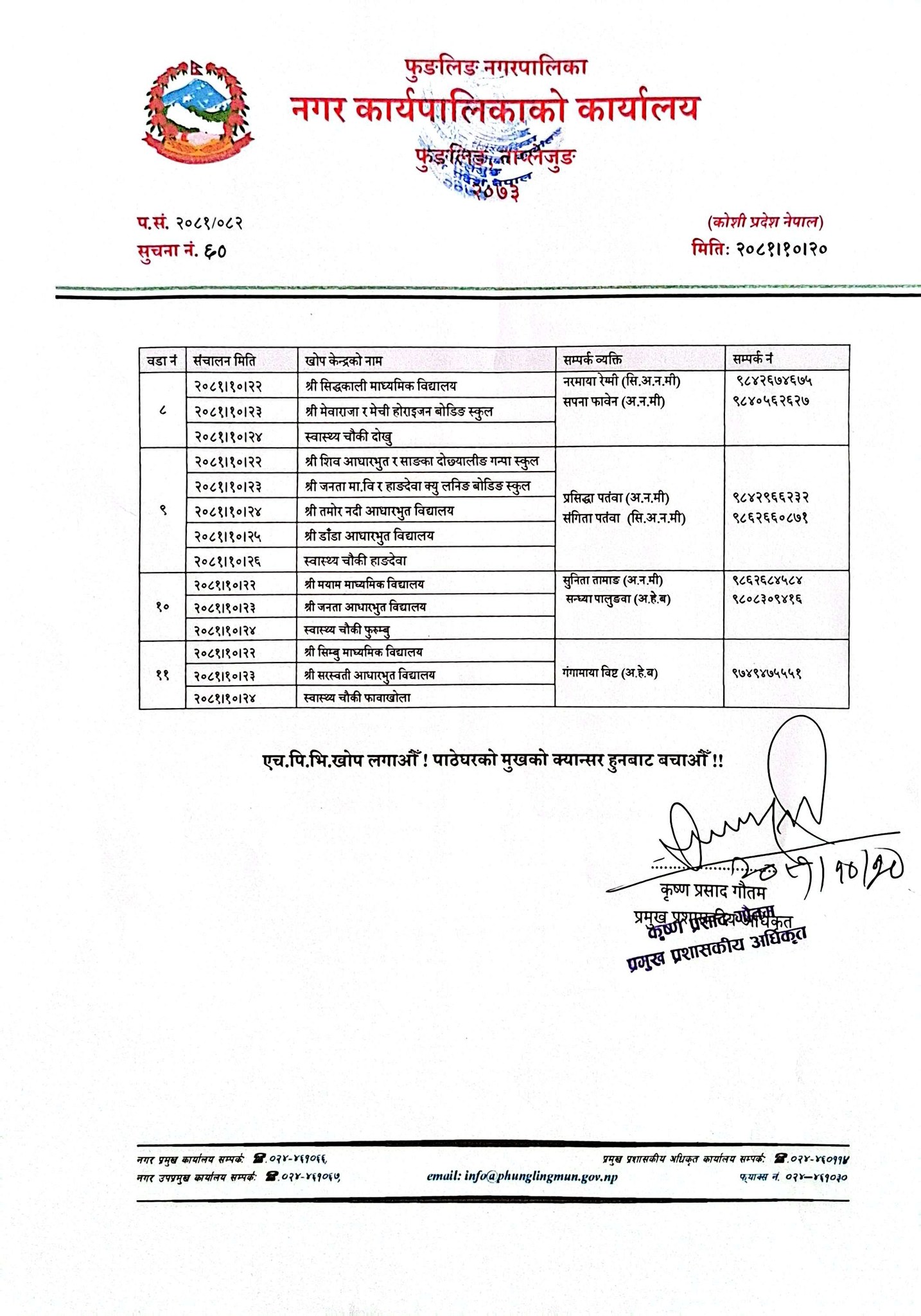 एच.पि. भी. खोप अभियान २०८१ संचालन सम्बन्धि सूचना फुङलिङ नगरपालिकाकाे सुचना॥
