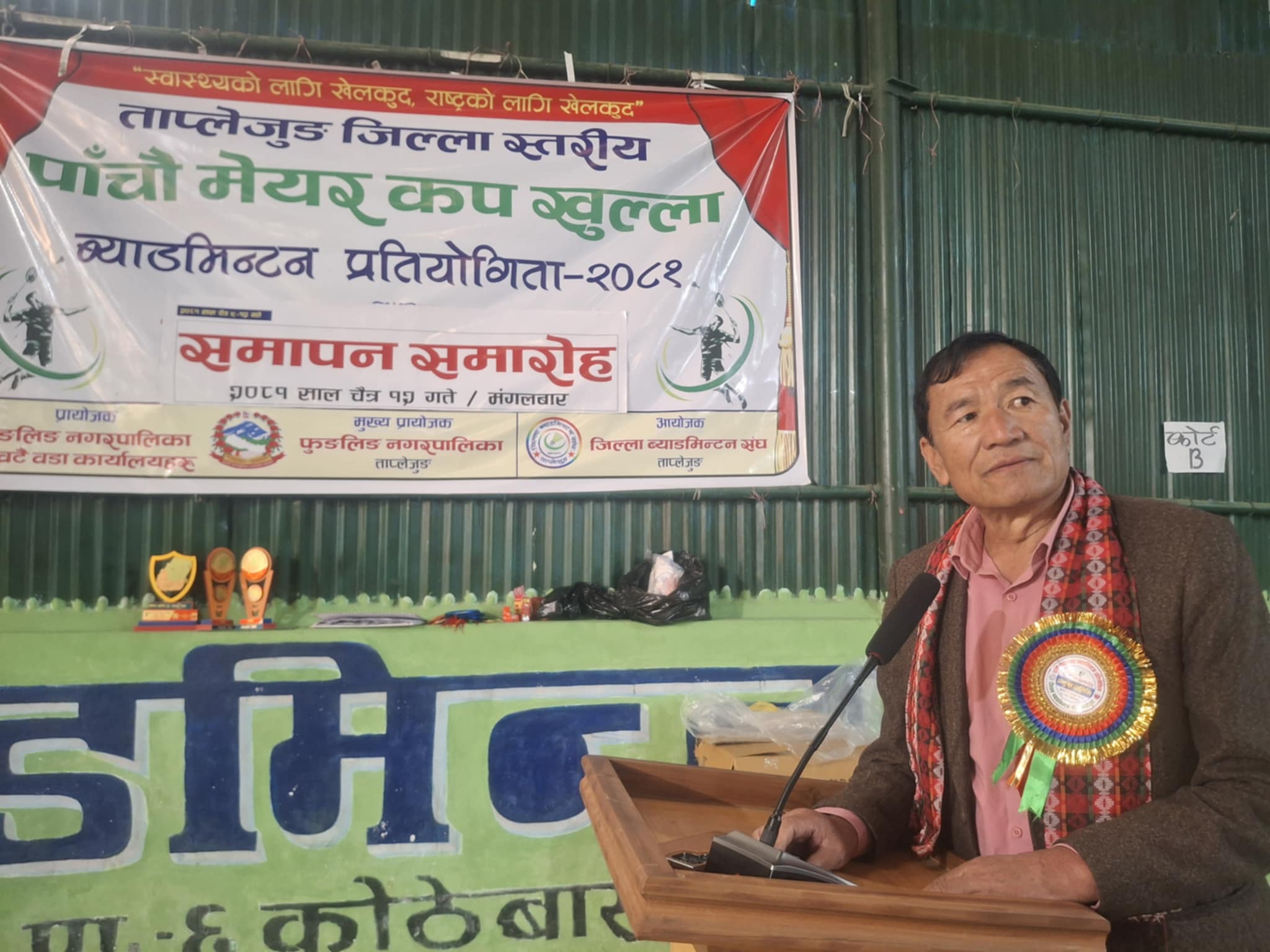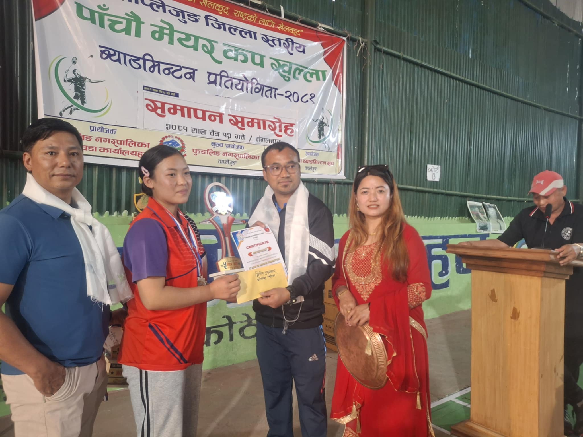 चैत १३ गते । जिल्लाको फुङलिङ नगरपालिका ६ स्थित इन्द्रेणी ब्याडमिन्टन हलमा मंगलबार पाँचौ मेयर कप ब्याडमिन्टन प्रतियोगीता सम्पन्न भएको छ । ८ वटा विधा थियो । चैत ९ गतदेखि १२ गतेसम्म भएको खेलमा खेलाडी र दर्शकको उपस्थिति विगतको तुलनामा निकै नै बढि रह्यो । अधिकाँश खेल प्रतिस्पर्धात्मक थियो ।