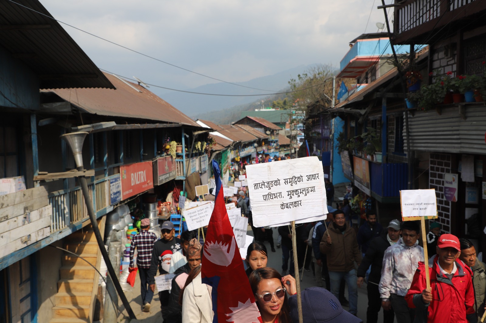स्थानिय मीना गुरुङले अशक्तले पनि माताको दर्शन गर्न पाउनुपर्ने बताए । भगवान कसैको पनि पेवा नहुने भन्दै गुरुङले केबलकार बने थोरै समय र कम खर्चमा पाथीभराको दर्शन सम्भव हुने बताए । सामुदायिक हलबाट निस्किएको र्यालीले बजार परिक्रमा गरेको थियो । च्याब्रुङ र नौमति बाजासहित प्लेकार्ड बोकेर सहभागी बनेँ । केबलकारको महत्व झल्काउने नारा प्लेकार्डमा लेखिएको थियो ।