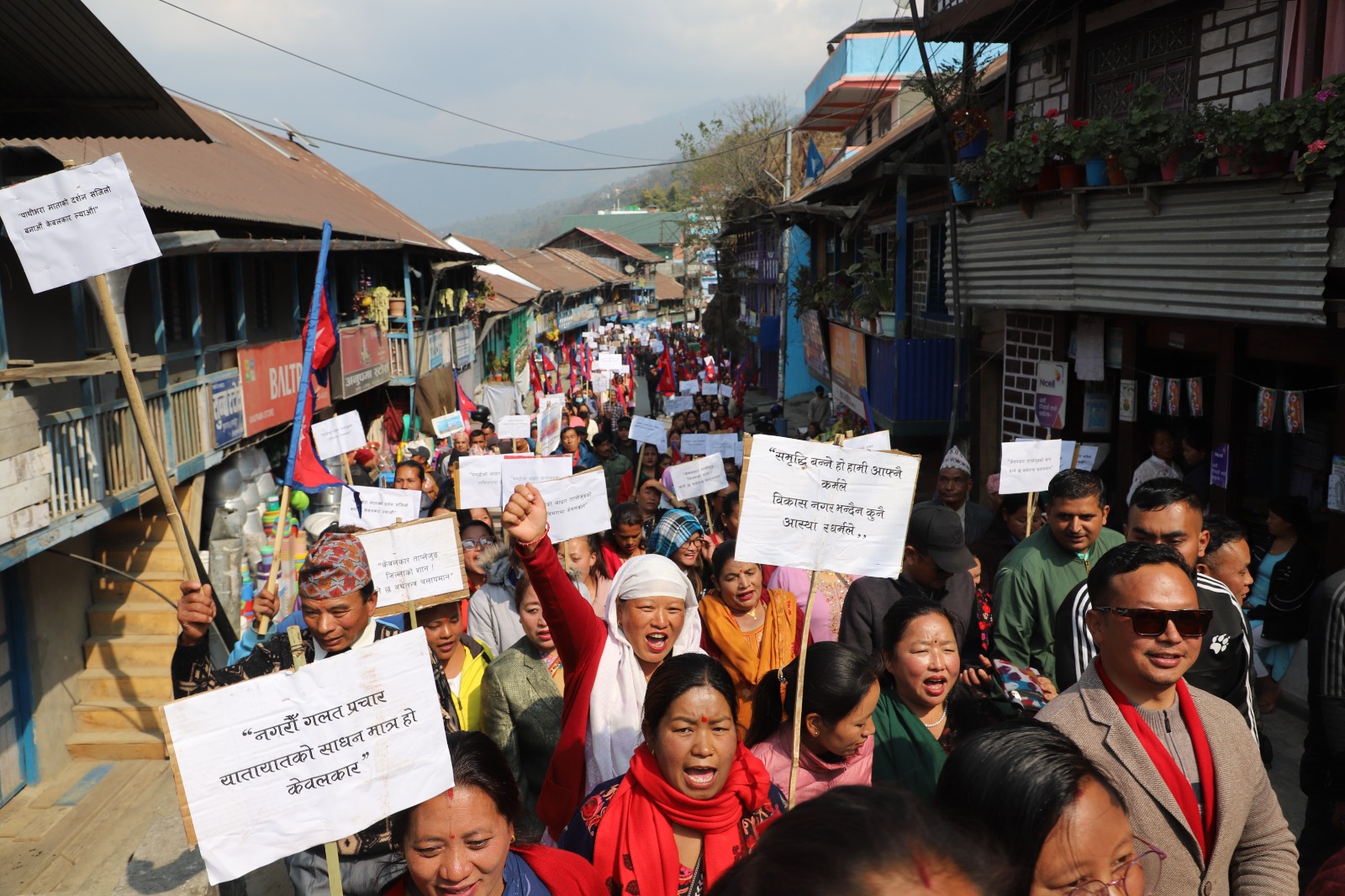 केबलकारको पक्षमा निकालिएको र्यालीमा सहभागीले मन्तव्य राख्नुअघि खादा लगाएर सम्मान समेत गरे । लगत्तै मनतव्य सुरु गरेका माबोले भने,‘यस केबलकार । यस केबलकार । यस केबलकार ।’ माबोले ‘यस केबलकार’ भन्दा सहभागीले स्वर मिलाएर ‘यस केबलकार’ भन्दै साथ दिए । नगरप्रमूख अमिर मादेन,निर्माण व्यवसायी इन्द्र केदेम लगायत सहभागीले खादा लगाउँदा नौमती बाजा समेत बजाएका थिए ।