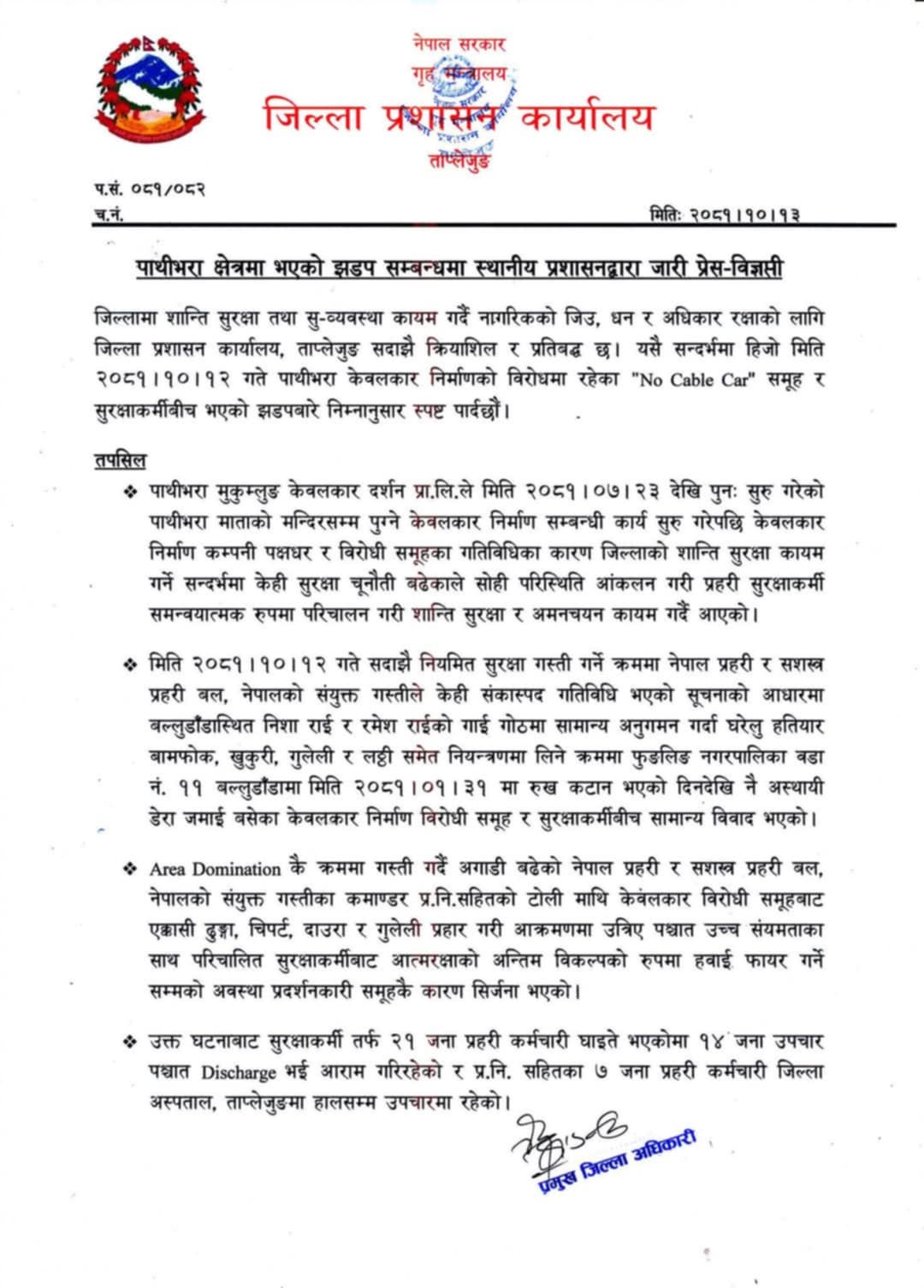 माघ १५ गते । जिल्लाको पाथीभरास्थित बलुडाँडामा भएको झडपको विषयलाई लिएर मेची राजमार्ग र तमोर करिडोर यातायात बन्दको आव्हान गरेको ‘नो केबलकार समूह’ का अगुवा मध्येका