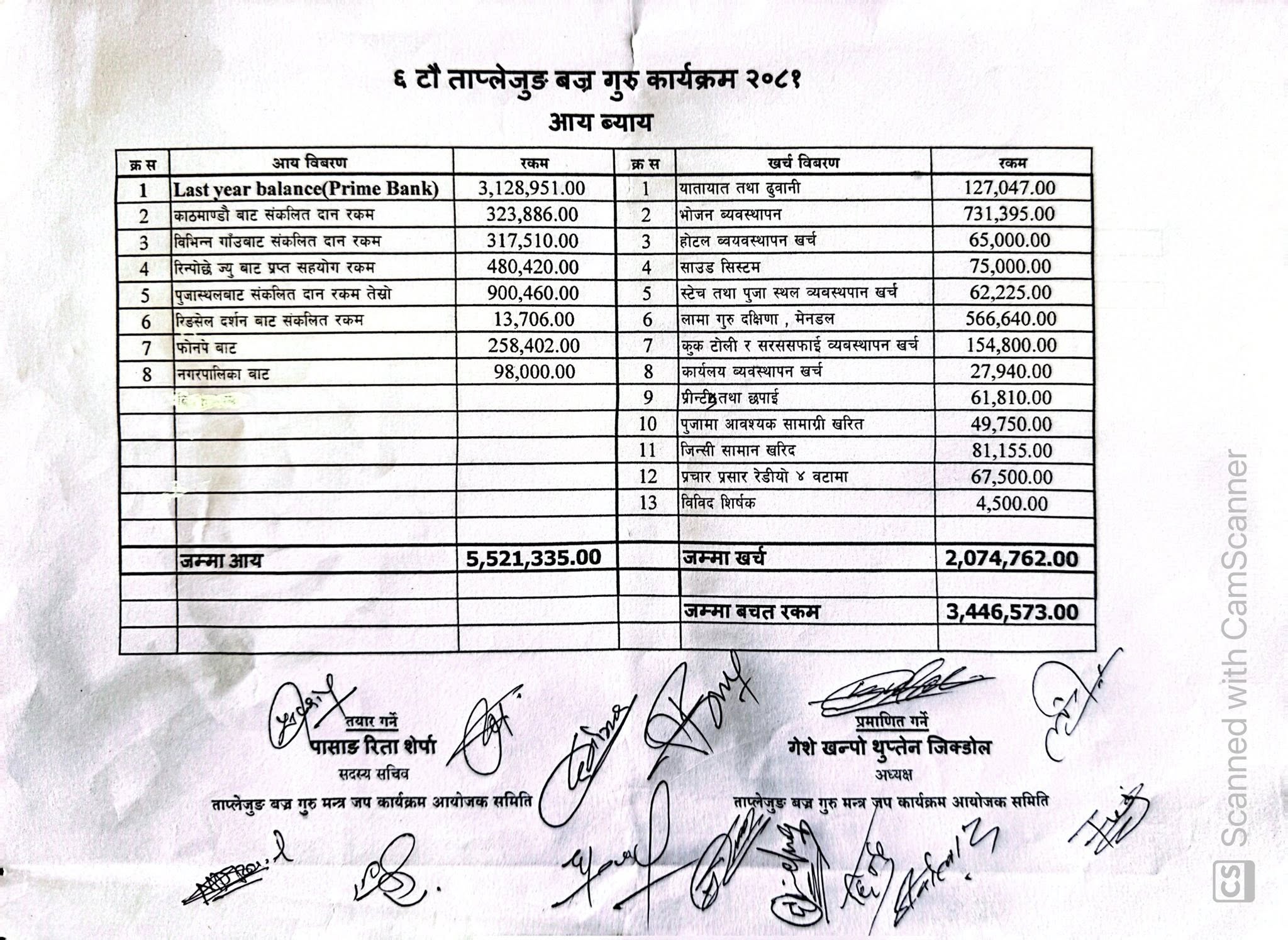 सुकेटारमा सम्पन्त्र छैटौ बज्रगुरु मन्त्रजपमा ३४ लाख ४६ हजार ५ सय ७३ रुपैयाँ बचत