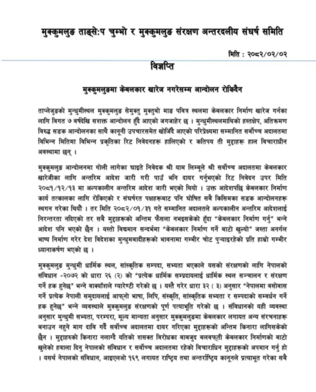 ताप्लेजुङको पाथीभरामा केबलकार विरुद्ध आन्दोलन जारी
