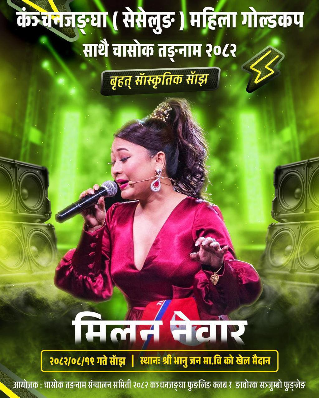 गायिक मिलन नेवारले भनिन्,‘ताप्लेजुङमा शुक्रबार साँझ प्रस्तुती दिन तयार छौ । तपाईहरु तयार हो ?’