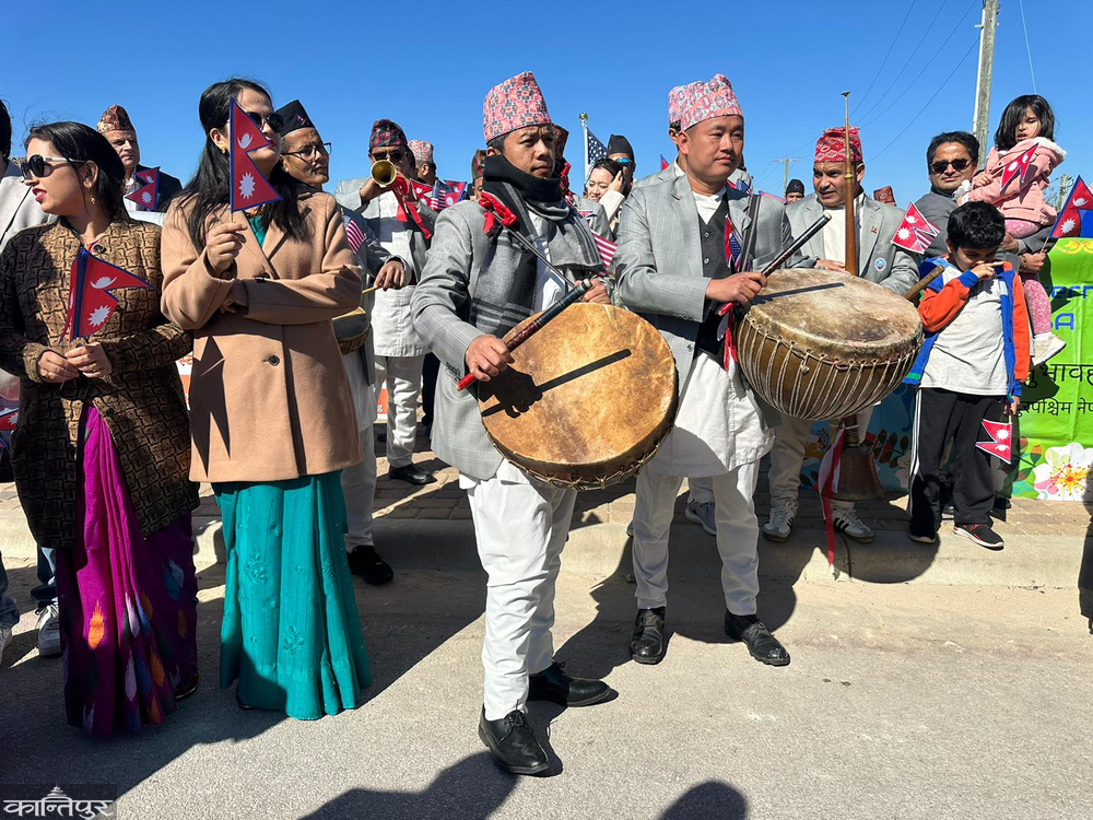 फाल्गुन ५ गते । घनघन बजेको पञ्चेबाजा, श्रृङ्गारिएकी कुमारी, दौरासुरुवाल ढाका टोपी, गुन्यु चोलोको पहिरनसँगै प्रदर्शनमा राखिएको बुद्धको मूर्ति, जाँतो र हलोले अमेरिकाको टेक्ससमा नेपालको झल्को दिएको छ । शनिबार टेक्ससको राजधानी अस्टिनमा मनाइएको ‘नेपाल डे’मा नेपालको झल्को दिने प्रदर्शन प्रस्तुत गरिएको थियो । नेपाल–अमेरिका द्वत्य सम्बन्धको ७५ वर्ष पुगेसँगै २०२३ मा टेक्सस राज्यसभाले फ्रेबुअरी १६ लाई ‘नेपाल डे’ घोषणा गरेको थियो । सोही अवसरमा दर्जन बढी नेपाली समुदायका संघ–संस्थाहरुले शनिबार नेपाल परेड कार्यक्रम आयोजना गरेका हुन् । टेक्ससमा दोस्रो पटक आयोजना गरिएको नेपाल परेडमा नेपालको संस्कृति, परम्परालाई प्रस्तुत गरिएको हो । कार्यक्रममा करिब १ हजार ५ सय नेपाली उपस्थित थिए । उनीहरुले आफ्नो भेषभुषाका साथ पञ्चेबाजाको धुनमा नेपालसँग सम्बन्धित गीत बजाउँदै र्याली निकालेका थिए ।