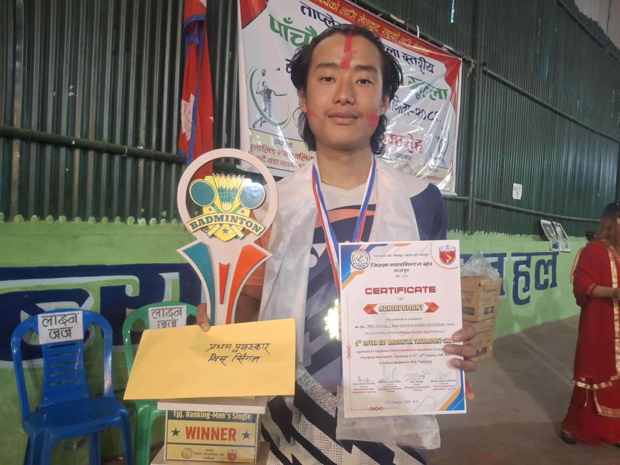 निशुम गुरुङलाई उदयीमान खेलाडी घोषित गरि र्याकेट प्रदान गरेको छ । विजेता र उपविजेतालाई नगद पुरस्कारमा २५ प्रतिशत कर कटि गरि पुरस्कार प्रदान गरेको छ ।
