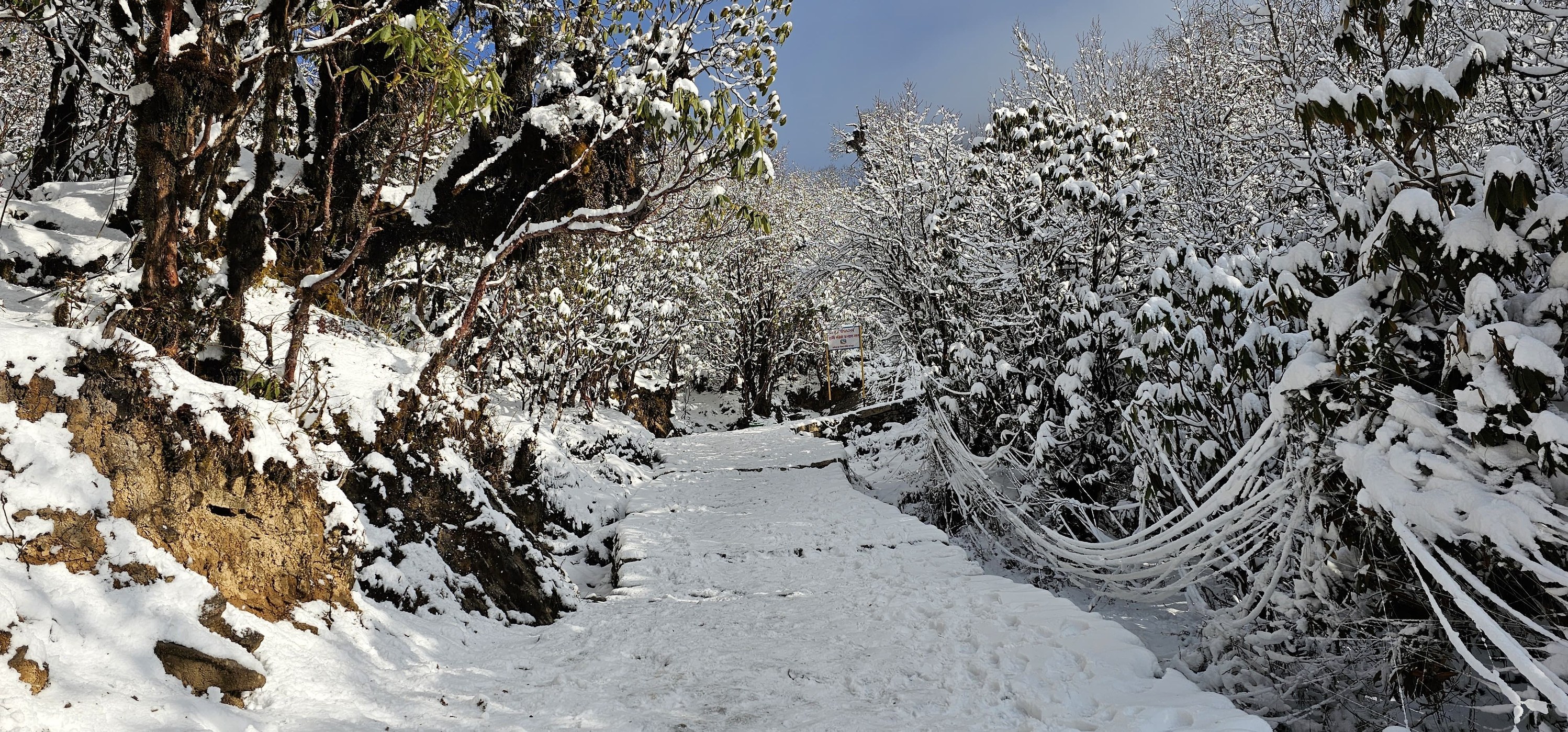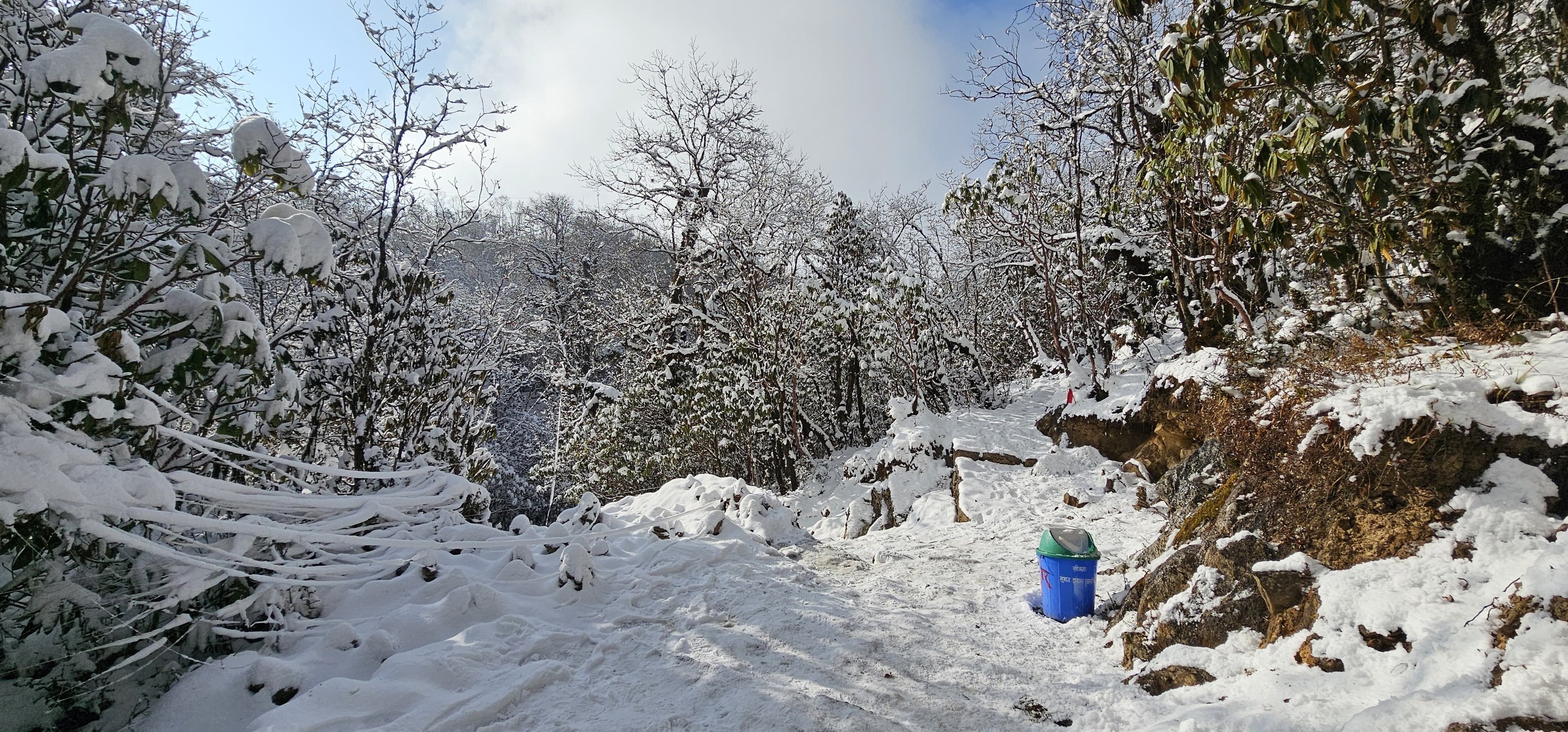 ठूलोफेदिदेखि पाथीभरासम्म । ढुङगाले विच्छ्याइएको पैदलमार्ग छ । तर ढुङ्गै देखिदैन् । किनकी हिउँले छपक्कै छोपेको छ । कान्छीथानदेखि पाथीभरासम्म टाँगिएको सेतो धागो । जाँदाखेरि दाहिनेपटि पर्छ । बाटो पहिल्याउन त्यही सेतो धागो सहयोगी बन्छ । ठाउँ ठाउँमा आरामका लागि बनेका चौतारा छन् । आँखाले भ्याउन्जेल गुँरासका जंगल छन् । रुखका पातमा अडिएको हिउँ । पग्लिएर भुईँमा झर्छ । भुईभरि जमेको हिउँ । कतिपयले हातकै औला कलम बनाउन आँट गर्छन् । हिउँमा लेख्न् । क्लिक फोटो त खिच्नै पर्यो । सायद प्रकृती बारेको गफ बढि भयो होला । आउनुहोस, अब लागौ पाथीभरातिर । यात्रा गराउँदैहुनुहुन्छ,राजेन्द्र महत (भिडियो) । हिउँको कथा । हिउँकै गफ । यति नै ।