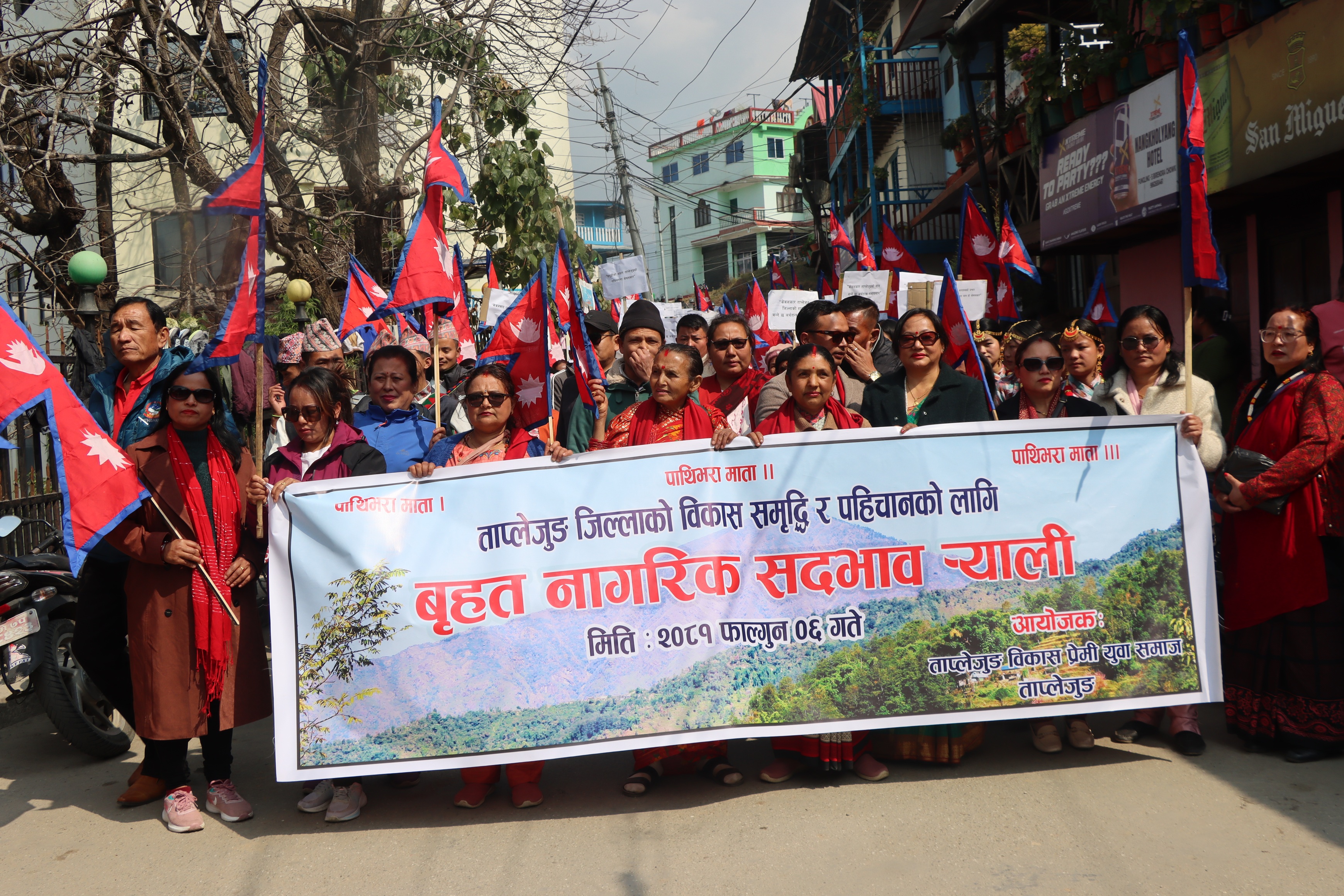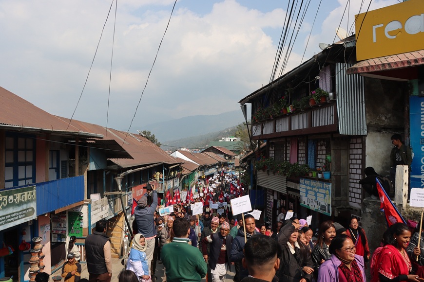 स्थानिय मीना गुरुङले अशक्तले पनि माताको दर्शन गर्न पाउनुपर्ने बताए । भगवान कसैको पनि पेवा नहुने भन्दै गुरुङले केबलकार बने थोरै समय र कम खर्चमा पाथीभराको दर्शन सम्भव हुने बताए । सामुदायिक हलबाट निस्किएको र्यालीले बजार परिक्रमा गरेको थियो । च्याब्रुङ र नौमति बाजासहित प्लेकार्ड बोकेर सहभागी बनेँ । केबलकारको महत्व झल्काउने नारा प्लेकार्डमा लेखिएको थियो ।