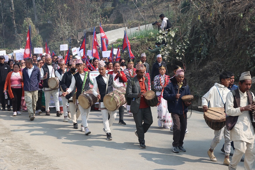केबलकारको पक्षमा निकालिएको र्यालीमा सहभागीले मन्तव्य राख्नुअघि खादा लगाएर सम्मान समेत गरे । लगत्तै मनतव्य सुरु गरेका माबोले भने,‘यस केबलकार । यस केबलकार । यस केबलकार ।’ माबोले ‘यस केबलकार’ भन्दा सहभागीले स्वर मिलाएर ‘यस केबलकार’ भन्दै साथ दिए । नगरप्रमूख अमिर मादेन,निर्माण व्यवसायी इन्द्र केदेम लगायत सहभागीले खादा लगाउँदा नौमती बाजा समेत बजाएका थिए ।
