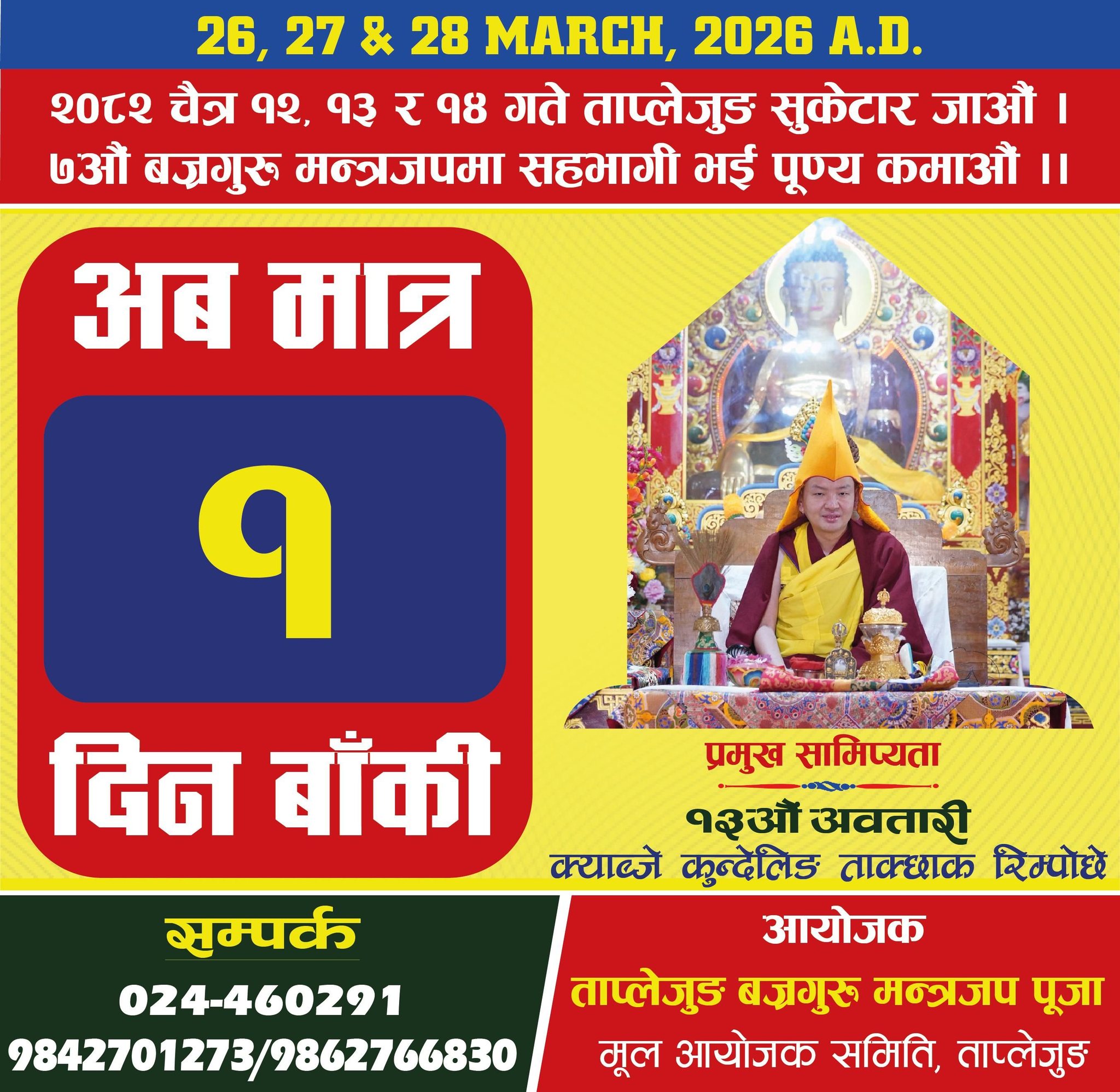 ताप्लेजुङ सुकेटारमा ७औं बज्रगुरु मन्त्रजप: बुधबार १३औं अवतारी रिम्पोछेको स्वागत