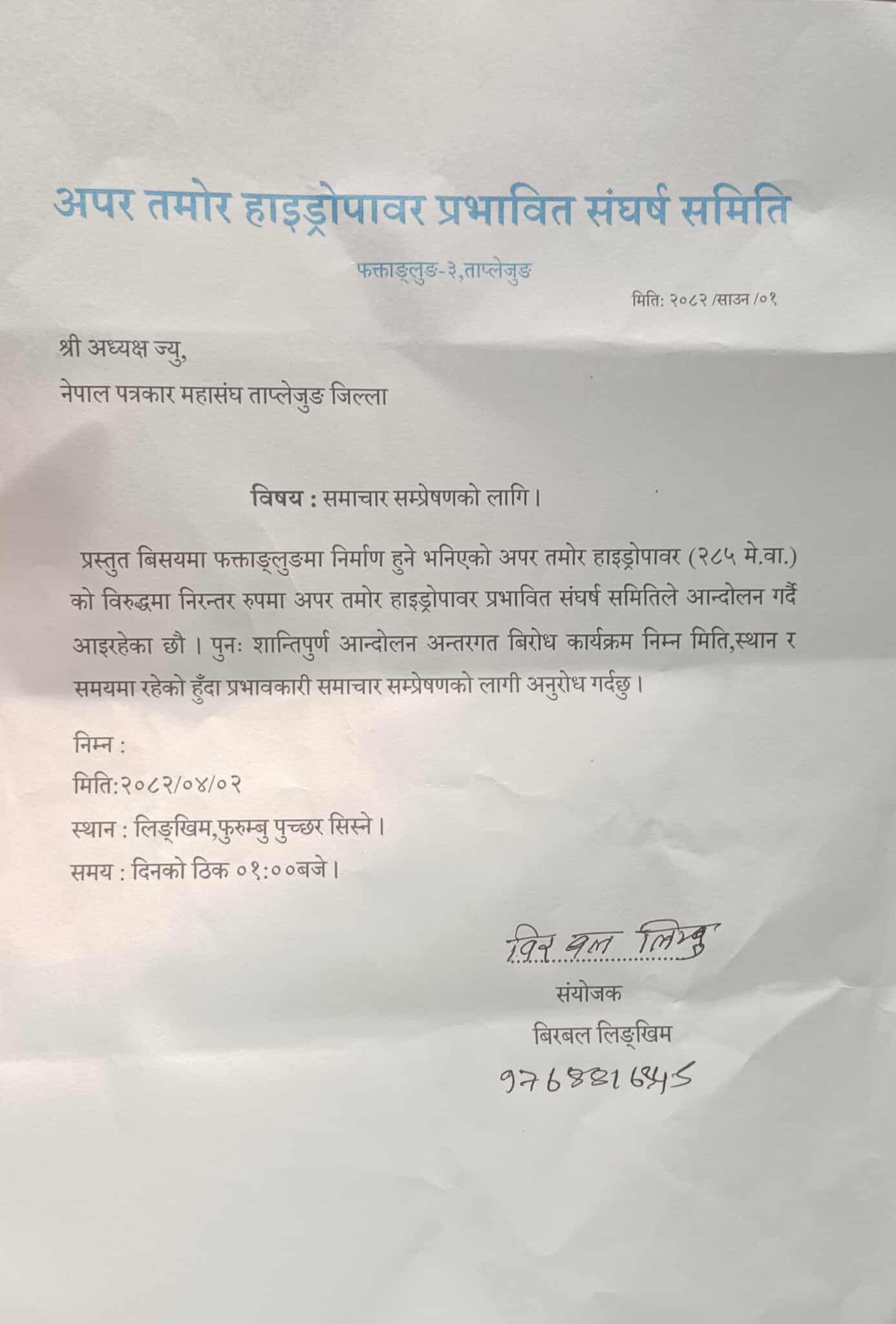 २ सय ८५ मेगावाटको अपर तमोर जलविद्युत् आयोजनाको निरन्तर विरोध
