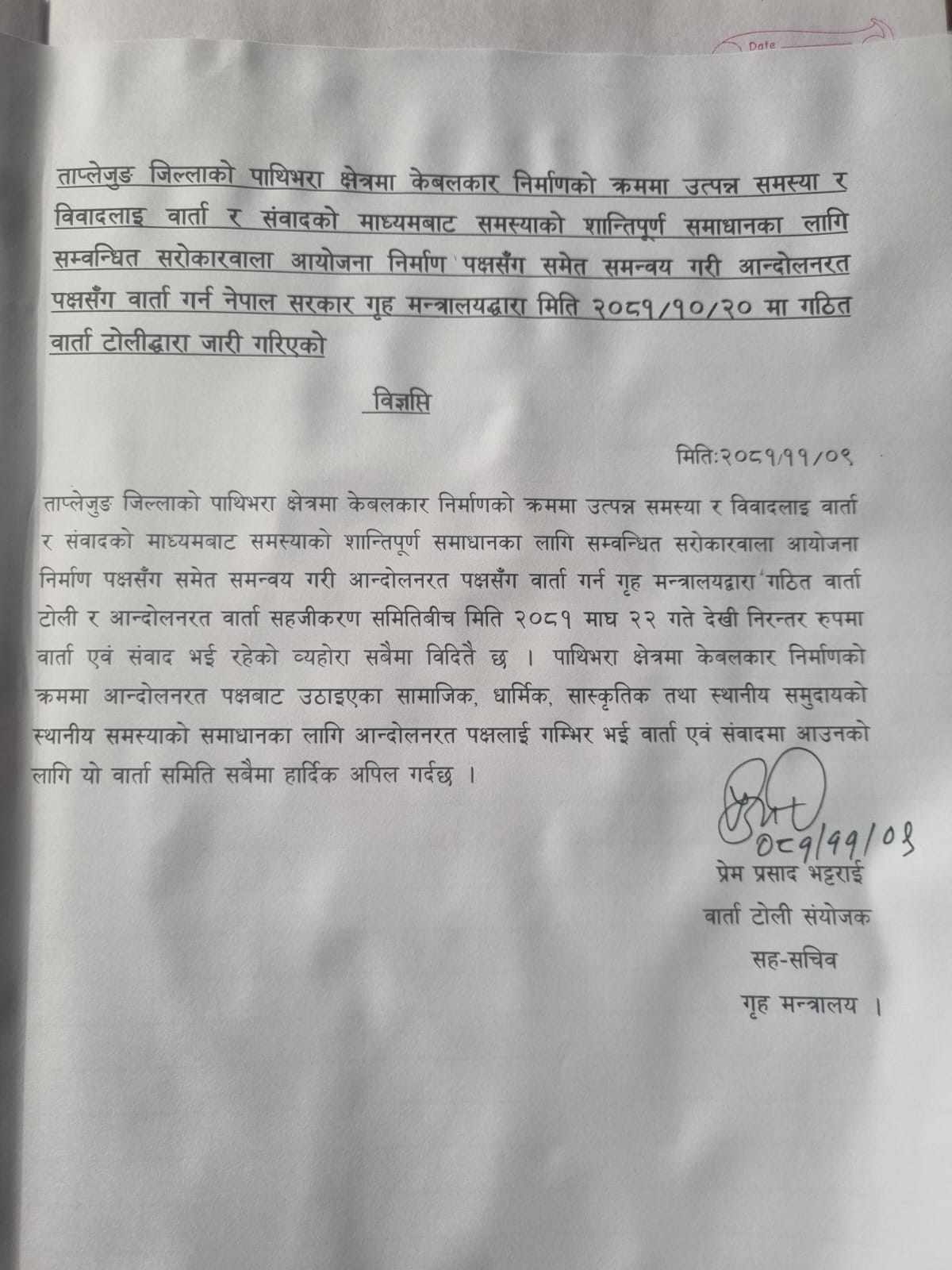 जिल्लाको पाथीभरा क्षेत्रस्थित काफ्लेपाटी नजिक निर्माणाधिन ‘बटम स्टेशन’ क्षेत्रमा सुरक्षाकर्मी र केवलकार विरुद्धमा आन्दोलनरत समूहबिच विहिबार झडप भएको छ ।
