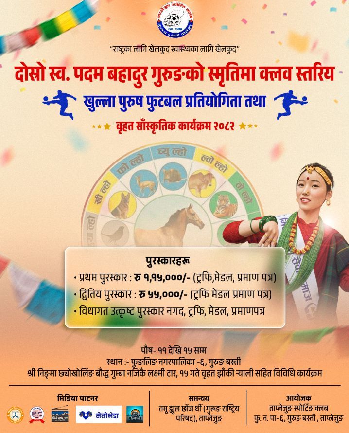 दोश्रो स्व. पदम वहादुर गुरुङ स्मृती फुटबल पुस ११ गतेदेखि सुरु