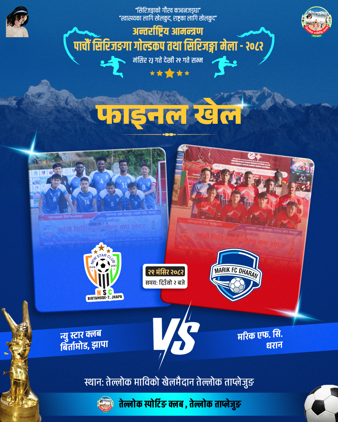 अन्तराष्ट्रिय आमन्त्रण सिरिजङ्गा गोल्डकप : उपाधि झापा कि धरानले जित्ला ?